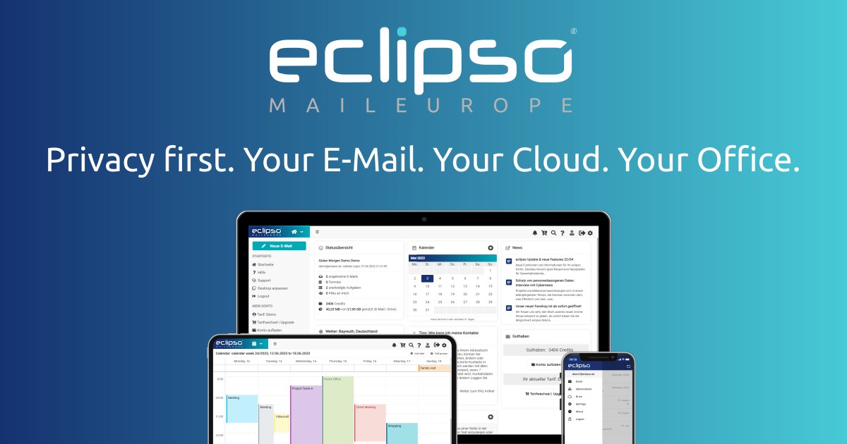 eclipso Connect, das werbefreie E-Mail & Cloud Konto, überzeugt durch ausreichend Speicherplatz, professionellen Spam- und Virenfiltern und einer ansprechenden und leicht zu bedienenden Oberfläche.