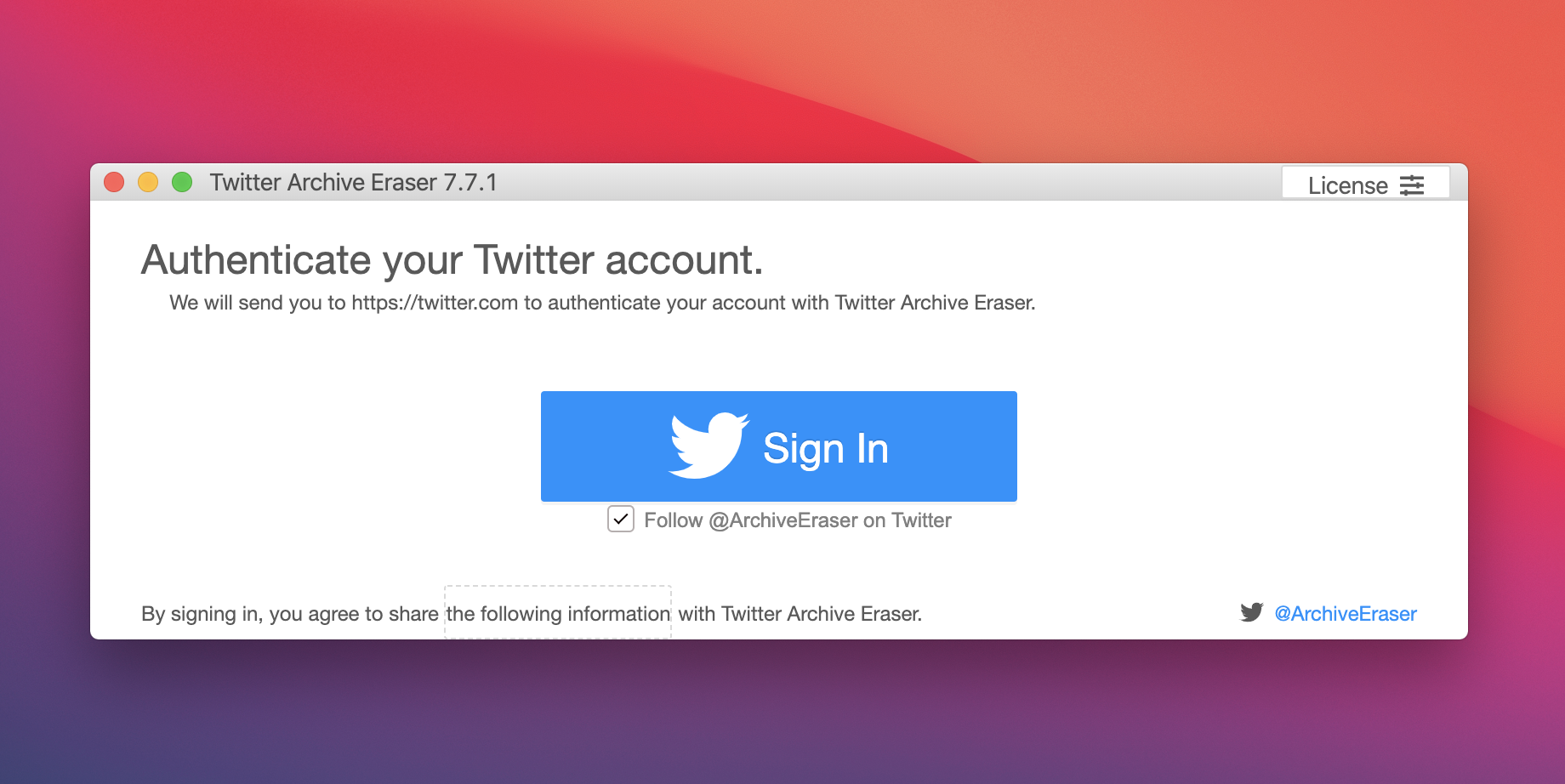 Mit dem Desktop-Tool (für macOS & Windows) behältst du die volle Kontrolle über die Bereinigung deines Twitter Archiv-Verlaufs.